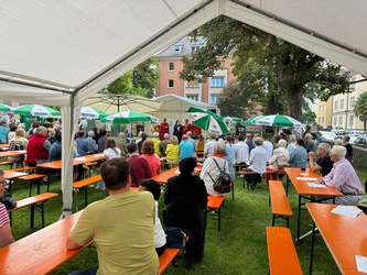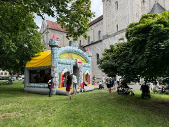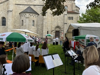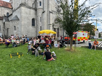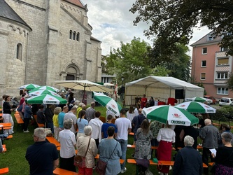 Das gemeinsame Sommerfest von St. Adalbero und St. Andreas begann mit einem Open-Air-Gottesdienst auf dem Kirchplatz. Es gab im Anschluss ein vielseitiges Kinderprogramm, das von den Pfadfindern, Ministranten und der Bücherei gestaltet wurde. Die Kinder konnten sich an einer Hüpfburg austoben, beim Bücherflohmarkt stöbern, den Leselöwen treffen. Auch am Eine-Welt-Stand gab es interessante Dinge zu entdecken. Ein besonderes Highlight war die Möglichkeit, den Rettungsdienst hautnah zu erleben. Die Tanz-Teenies aus Höchberg zeigten ihr Können, es gab Kinderpartytänze und als Höhepunkt trat die Black Velvet Band live auf. Das Sommerfest bot also ein abwechslungsreiches Programm für alle Altersgruppen und sorgte für jede Menge Spaß und Unterhaltung.