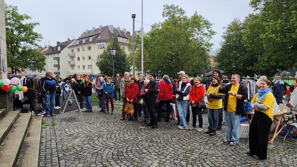 Ein besonderer Moment: Mit dem Schlag der Kirchenuhr um 11 Uhr wurde daran erinnert, dass der Flohmarkt vor 30 Jahren seinen Anfang nahm.