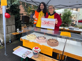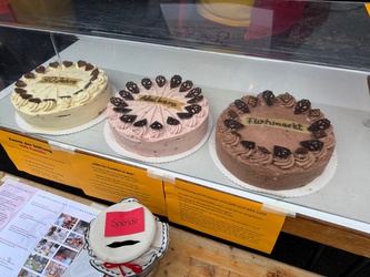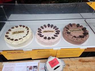 Anlässlich des 30jährigen Jubiläums gab es drei wunderbare Torten, die auf Spendenbasis zugunsten von SOS-Familie, der Stiftung der Ritaschwestern, Stück für Stück über die Kuchentheke gingen. Der so erzielte Betrag wurde vom Flohmarktteam noch ergänzt, so dass ein Erlös von 314,35 € an Sr. Elisabeth überreicht werden konnte.