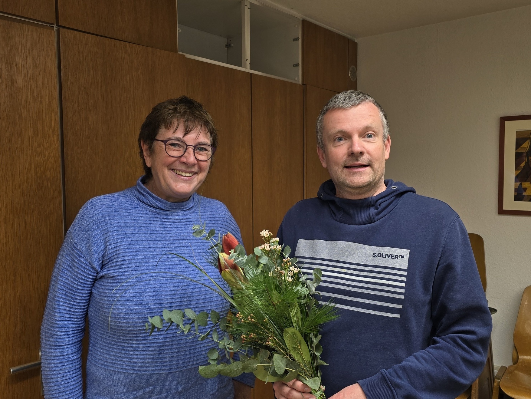 Ein besonderes Dankeschön gilt unseren treuen Büchereidiensten: Eleonore Geßner, die seit 10 Jahren aktiv ist, und Oliver Mitesser, der seit 5 Jahren dabei ist. Beide durften sich über einen Blumengruß freuen.