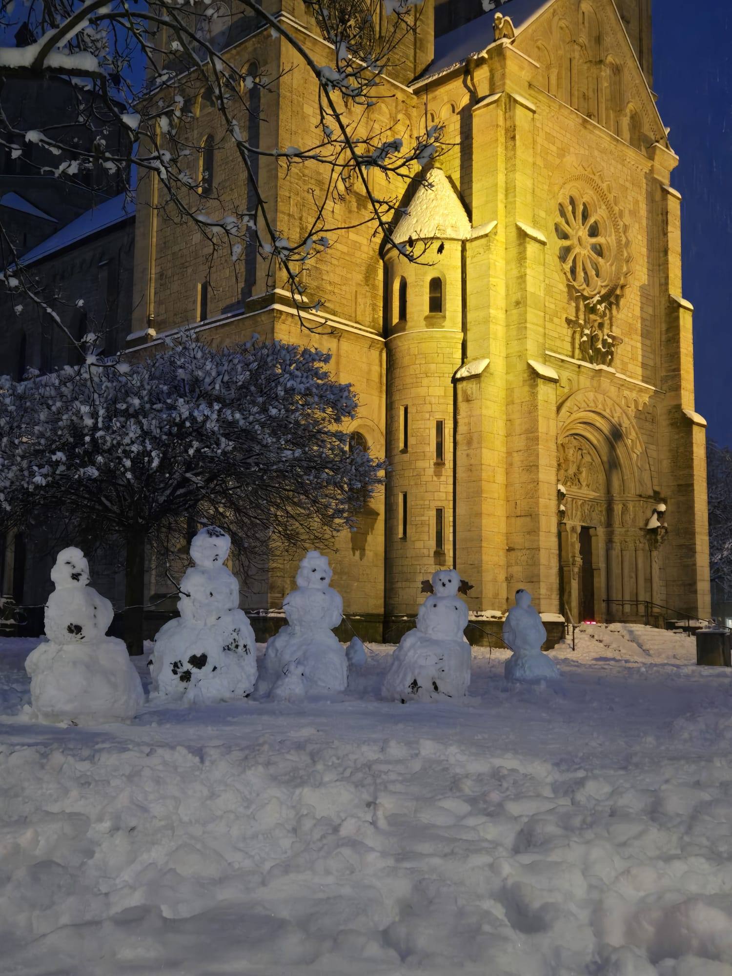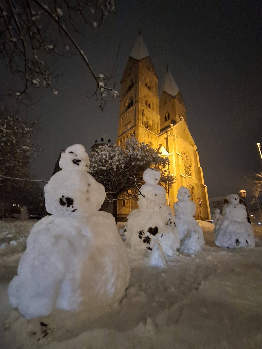 wurden faszinierende Schneemänner vor St. Adalbero gebaut. ![]()