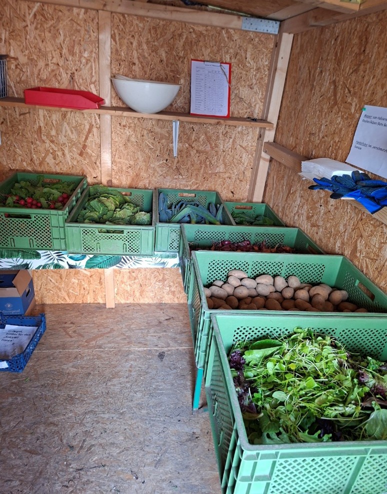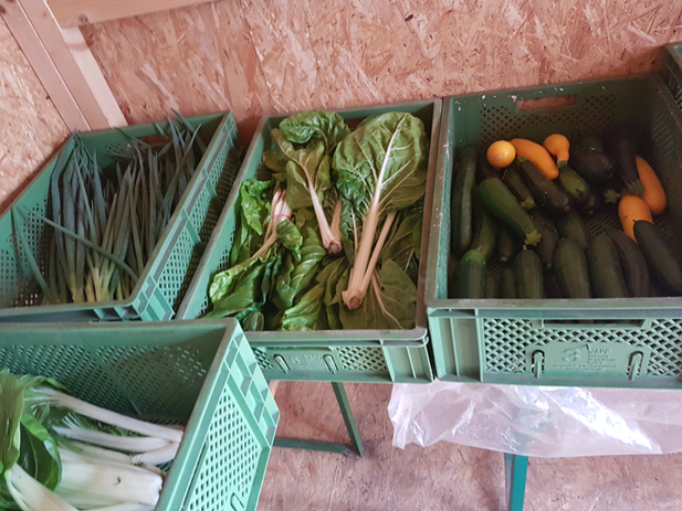 Jeden Dienstag ab 12:00 Uhr können Mitglieder des SoLaWi Kitzingen-Würzburg e.V. frische Lebensmittel von Kooperationsbetrieben abholen.