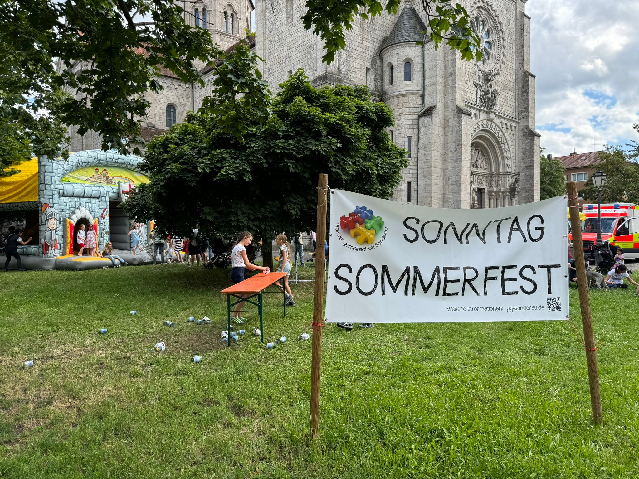 Das gemeinsame Sommerfest von St. Adalbero und St. Andreas begann mit einem Open-Air-Gottesdienst auf dem Kirchplatz. Es gab im Anschluss ein vielseitiges Kinderprogramm, das von den Pfadfindern, Ministranten und der Bücherei gestaltet wurde. Die Kinder konnten sich an einer Hüpfburg austoben, beim Bücherflohmarkt stöbern, den Leselöwen treffen. Auch am Eine-Welt-Stand gab es interessante Dinge zu entdecken. Ein besonderes Highlight war die Möglichkeit, den Rettungsdienst hautnah zu erleben. Die Tanz-Teenies aus Höchberg zeigten ihr Können, es gab Kinderpartytänze und als Höhepunkt trat die Black Velvet Band live auf. Das Sommerfest bot also ein abwechslungsreiches Programm für alle Altersgruppen und sorgte für jede Menge Spaß und Unterhaltung.