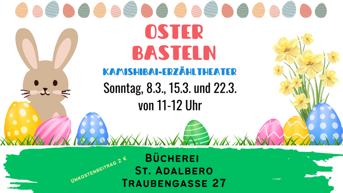 Wann: Am Sonntag, den 8. März, Sonntag, den 15. März und Sonntag, den 22. März. jeweils von 11 bis 12 Uhr in die Bücherei St. Adalbero, Traubengasse 27
