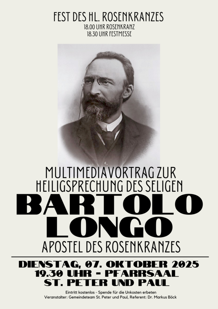 19:30 Uhr Multimediavortrag zur Heiligsprechung des Seligen Bartolo Longo