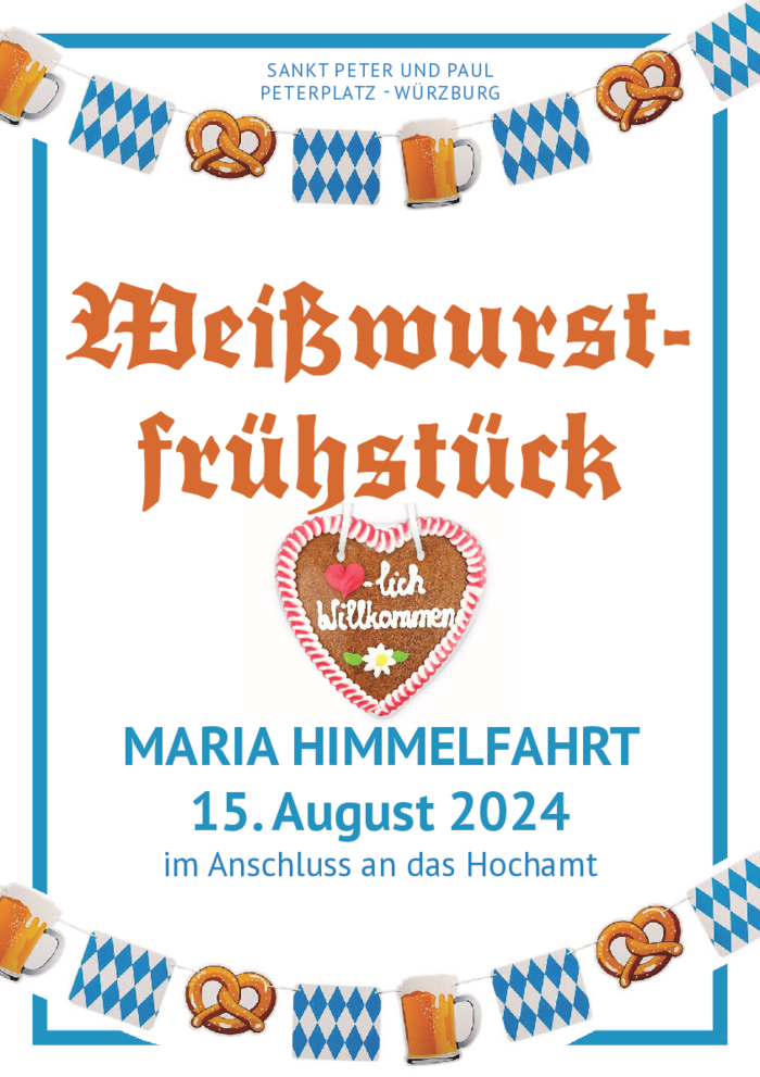 11:00 Uhr Hochamt an Maria Himmelfahrt anschl. Weißwurstfrühstück